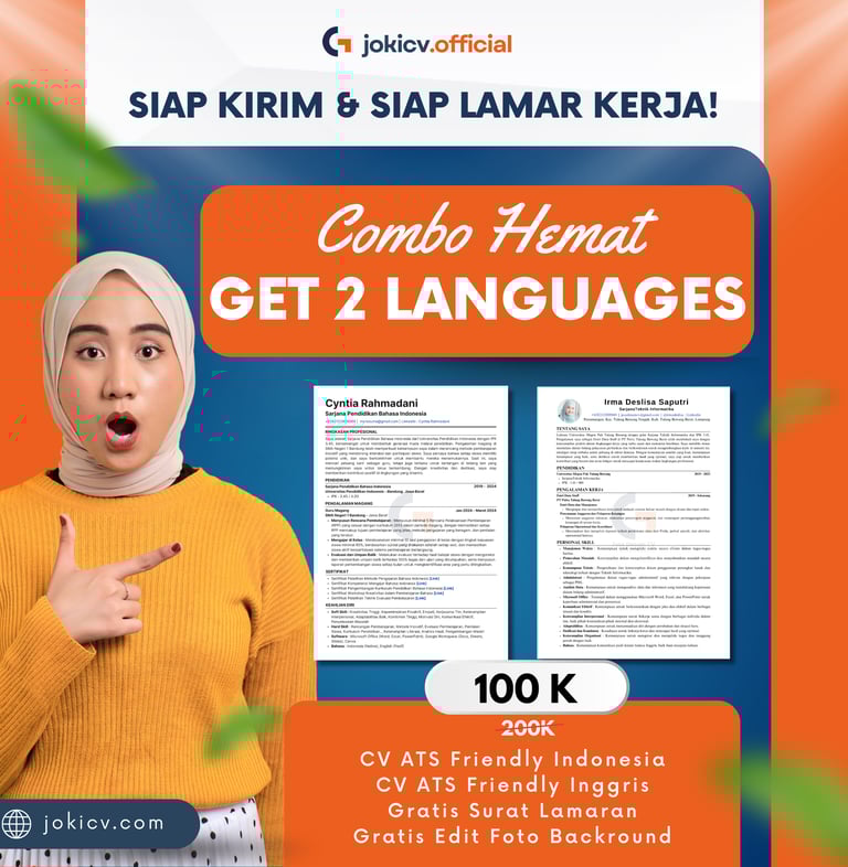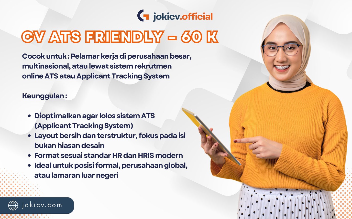 Kami di jokicv.official bantu kamu bikin CV yang gak cuma enak dipandang, tapi juga ATS friendly dan disukai HR.
