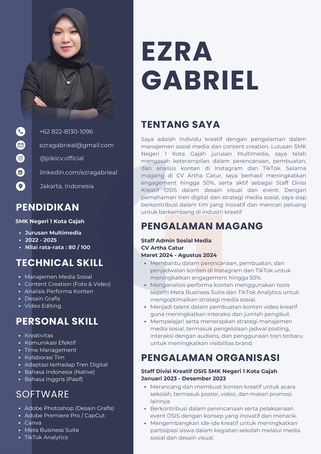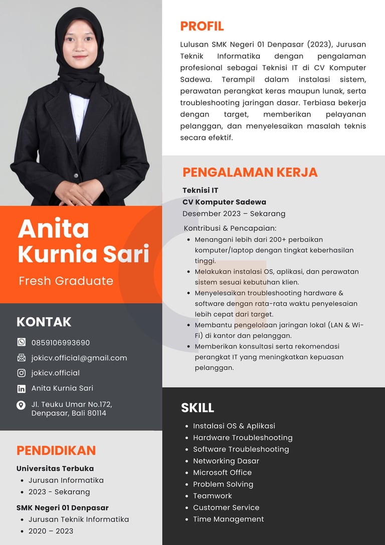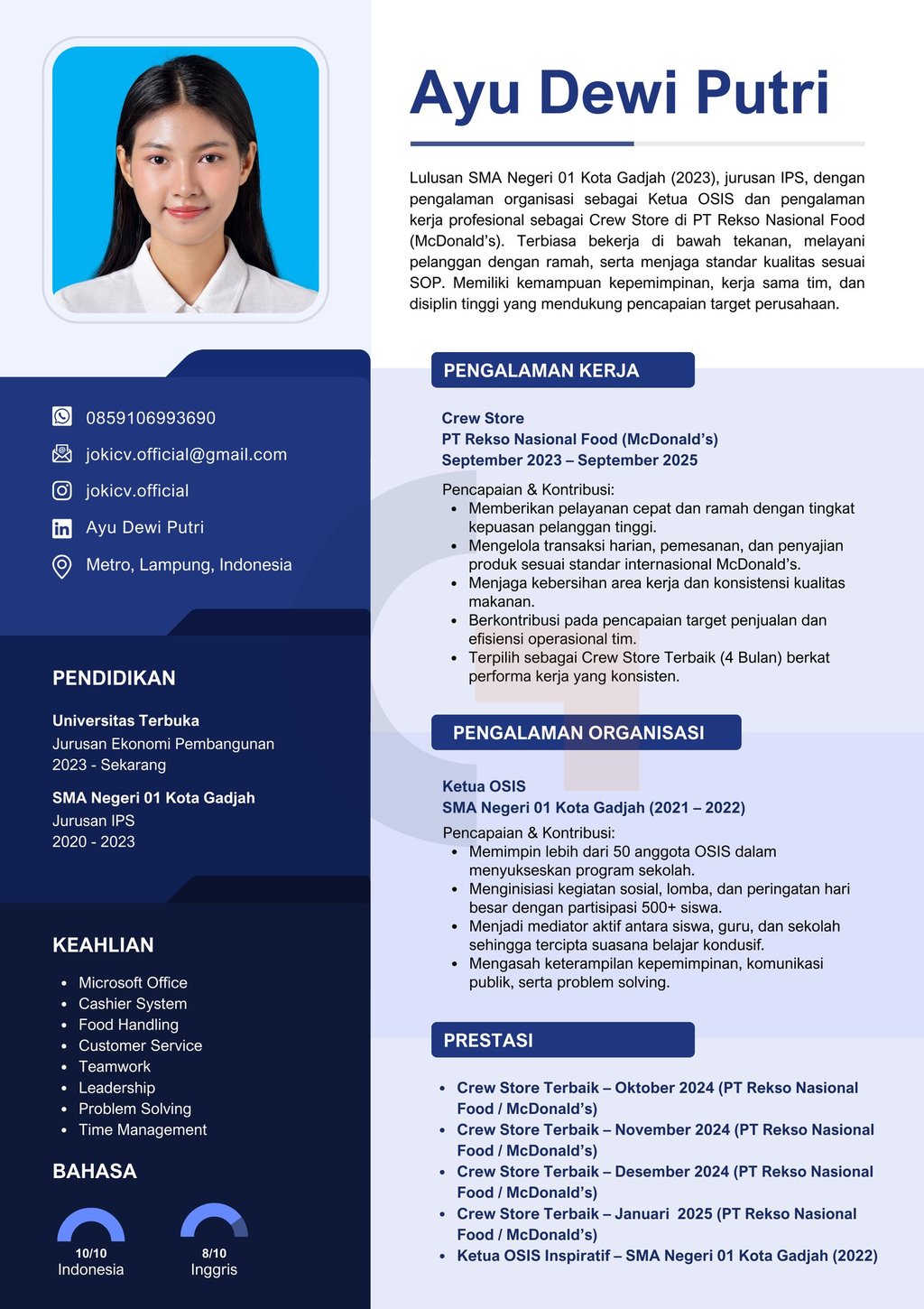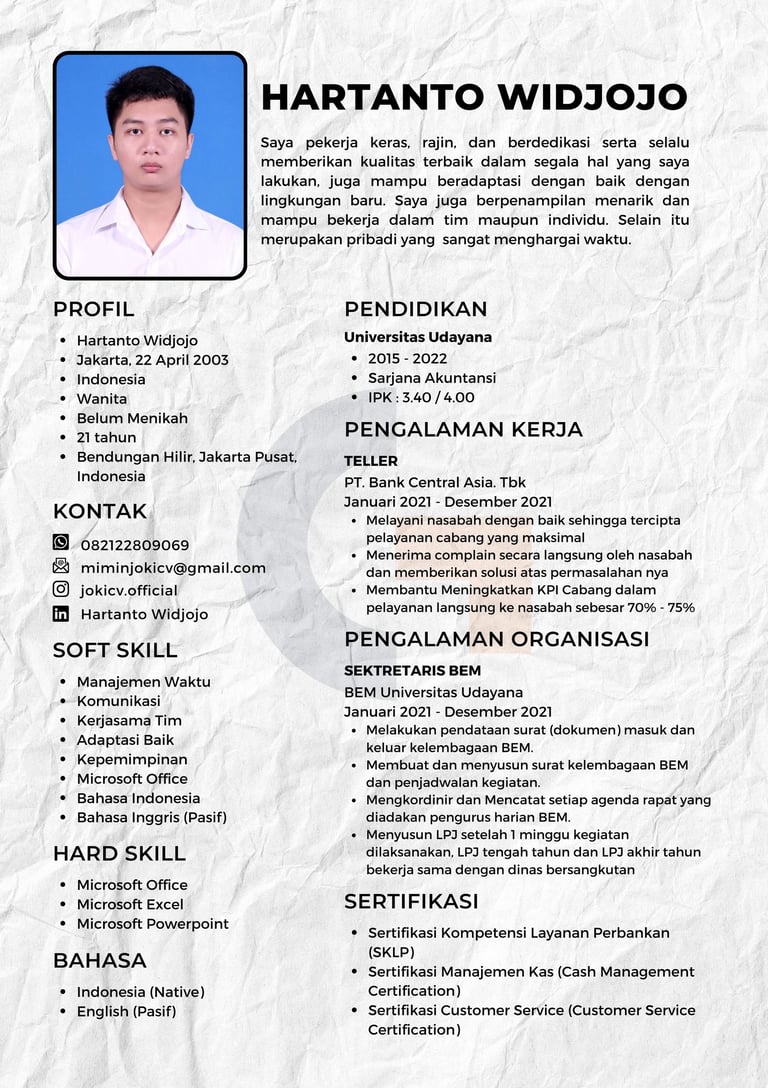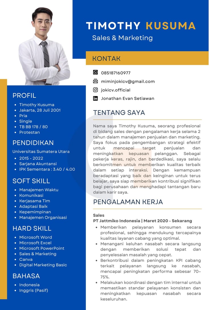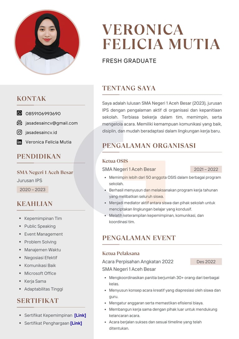 "Kami mengerti pentingnya kesan pertama saat melamar kerja. Karena itu, kami siap membantu membuat CV berkualitas yang sesuai dengan kebutuhan Anda, supaya peluang untuk dipanggil interview jadi lebih besar. Yuk, konsultasi gratis sekarang!"