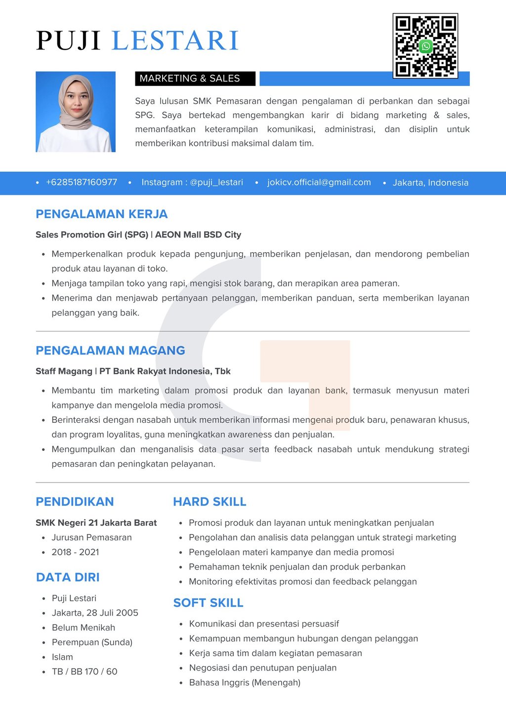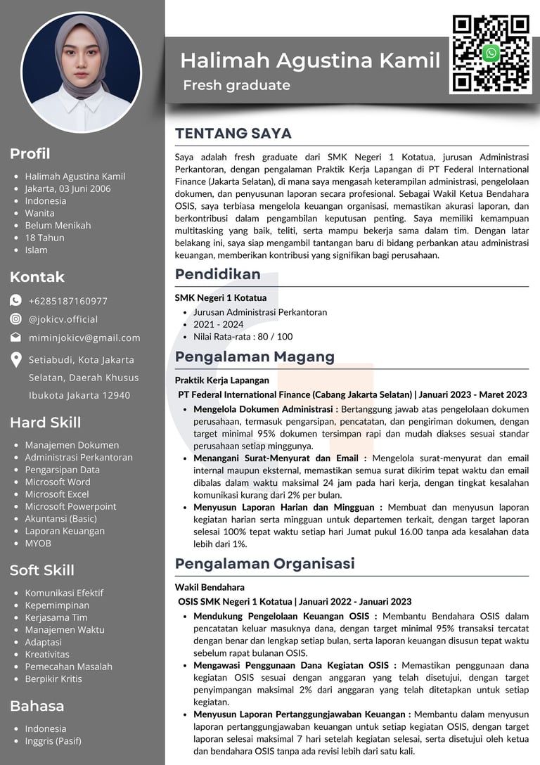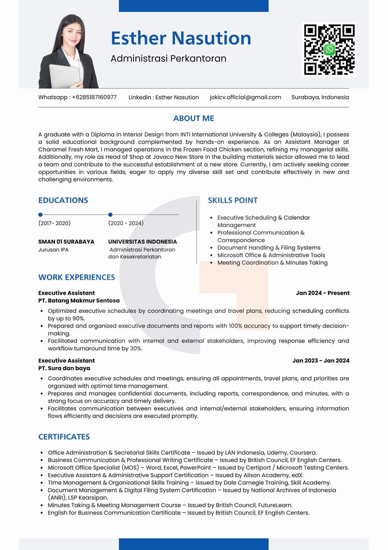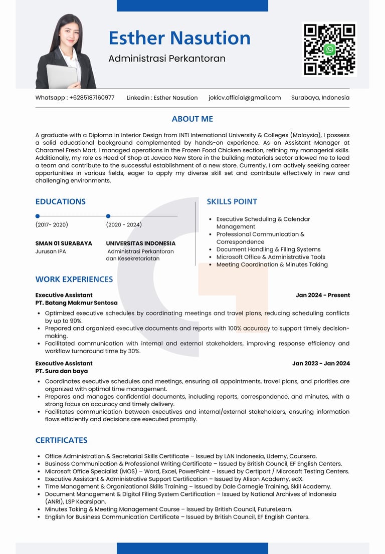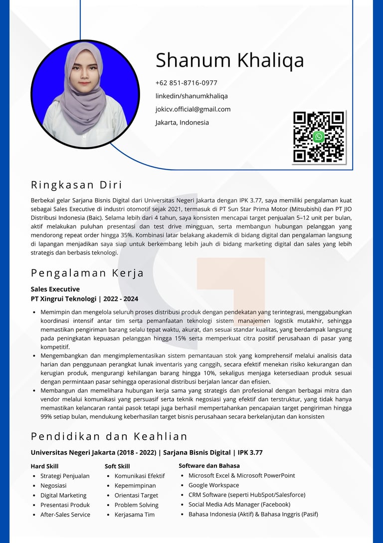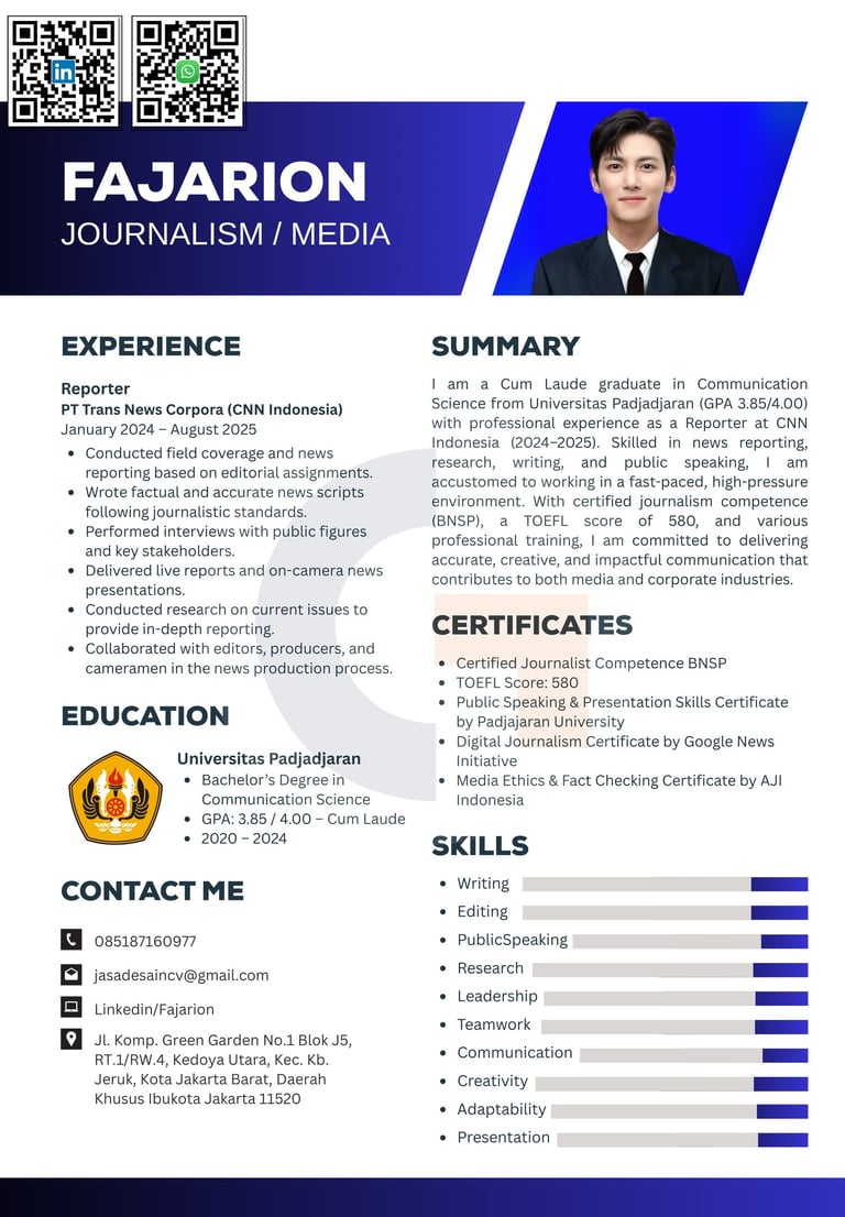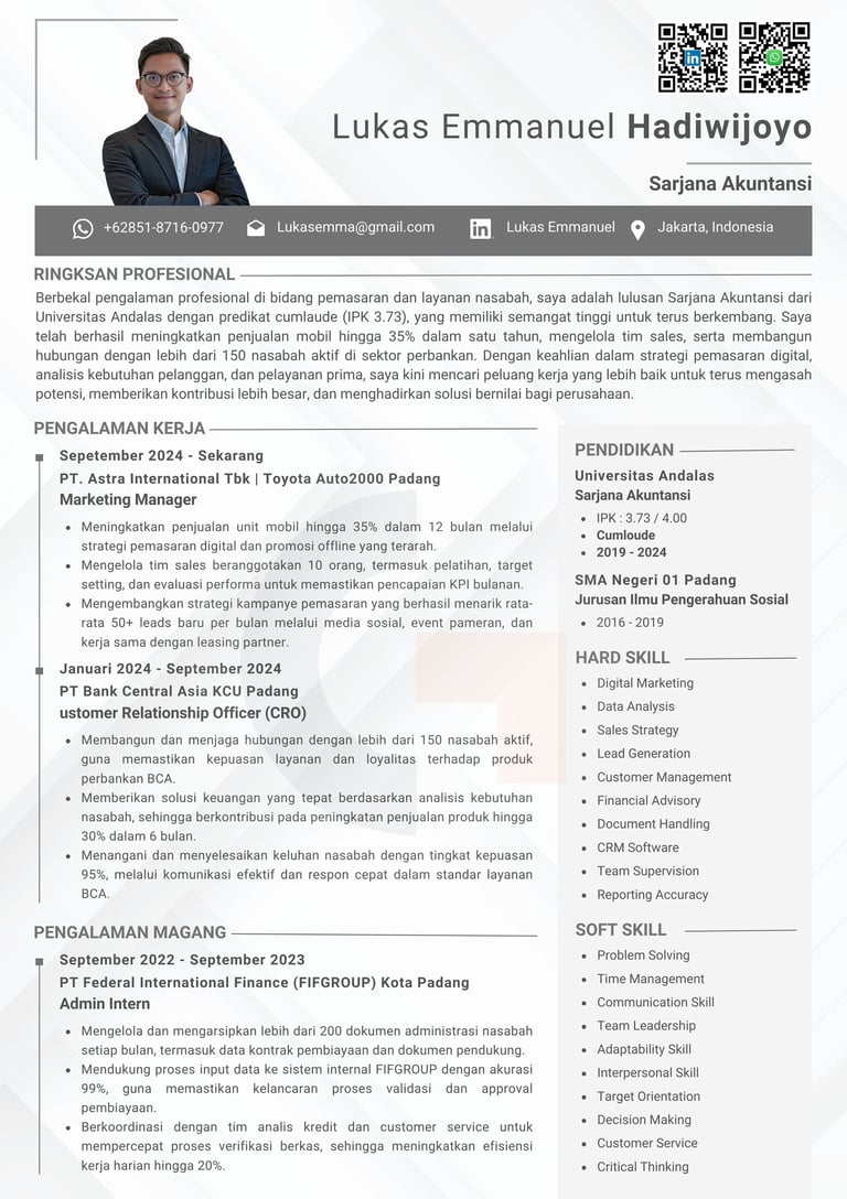 "Kami mengerti pentingnya kesan pertama saat melamar kerja. Karena itu, kami siap membantu membuat CV berkualitas yang sesuai dengan kebutuhan Anda, supaya peluang untuk dipanggil interview jadi lebih besar. Yuk, konsultasi gratis sekarang!"